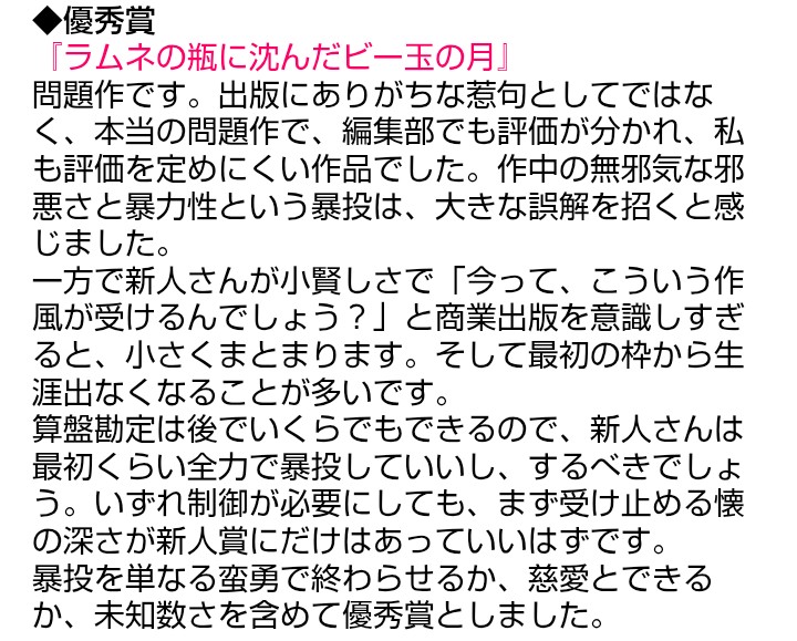 … | 547無念Nameとしあき25/10/18(土)23:31:48No.1359735983+審査員の誰か一人でも「コレに賞あげたらダメだろ」とかまともな判断持つ人いなかったのだろうか |